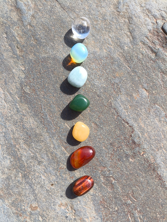 Este set de 7 gemas y minerales está cuidadosamente seleccionado para equilibrar y armonizar los 7 chakras principales, promoviendo el bienestar físico, mental y espiritual. Cada piedra resuena con la energía específica de un chakra, ayudando a desbloquear el flujo de energía y a restaurar la vitalidad. Utiliza estas gemas en tus meditaciones, rituales o como recordatorio de tu conexión con el universo y tu capacidad innata de sanar. Al trabajar con este set, puedes experimentar una mayor paz interior, claridad mental y una profunda alineación con tu propósito.