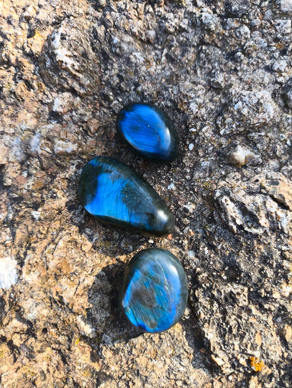 Limpia las piedras con humo de incienso o colócalas junto a una ventana con luz indirecta. Para recargar, utiliza una drusa de cuarzo o una placa de selenita. Evita sol directo prolongado sobre la Labradorita para preservar su irisación; trata el conjunto con paño suave. Guardarlas juntas refuerza su coherencia energética.