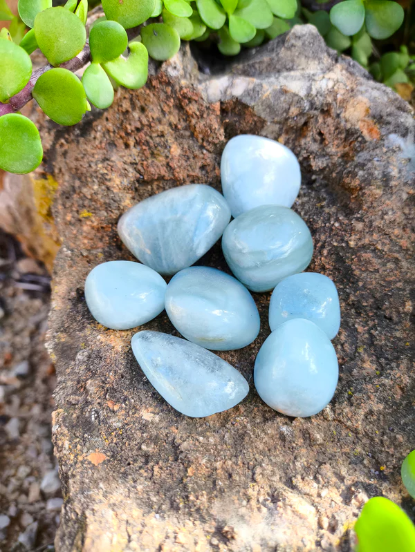 Limpia las piedras periódicamente con humo de incienso o colócalas junto a una ventana con luz indirecta. Para recargarlas, apóyalas sobre una drusa de cuarzo o una placa de selenita. Evita exposición solar intensa prolongada sobre la Opalita para preservar su aspecto. Guardarlas juntas refuerza su coherencia energética.