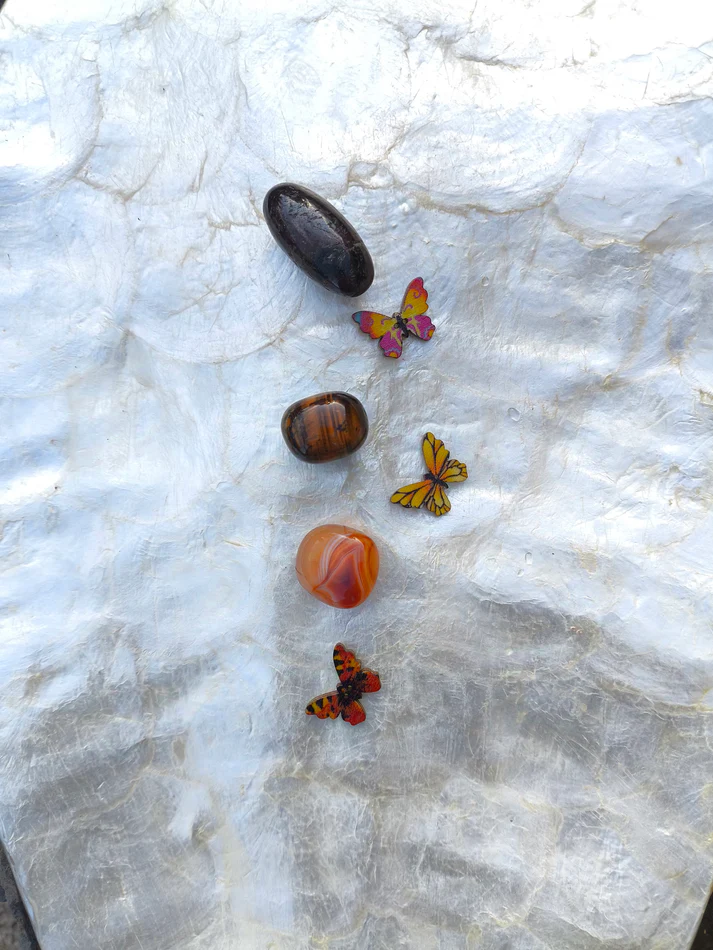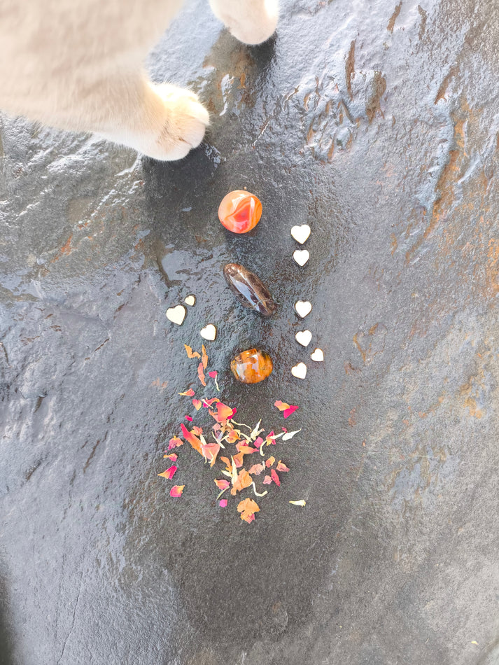 Este set no promete resultados médicos ni sustituye atención sanitaria; es un compañero simbólico y energético para cultivar presencia, calidez y perseverancia en un camino íntimo y personal. Con práctica constante, Ojo de Toro, Cornalina y Granate se convierten en un pequeño ritual de cuidado: raíz estable, fuego amable y fuerza que sostiene.
